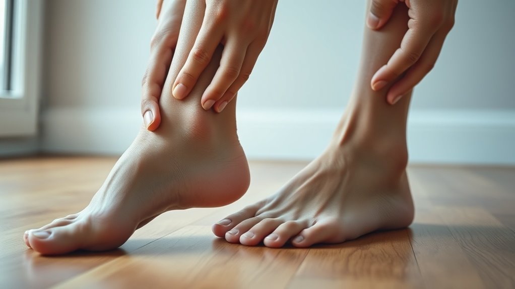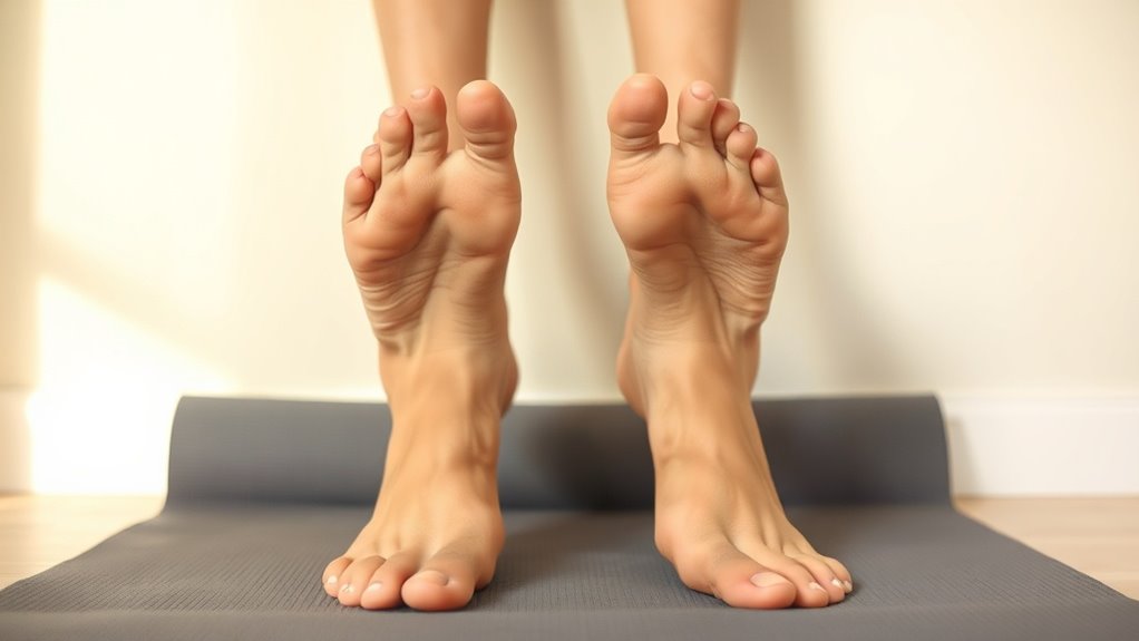 Stretching your calves and arches provides immediate relief for tired feet while preventing future discomfort. You’ll want to focus on basic calf stretches against a wall, followed by targeted toe and arch exercises that increase flexibility.