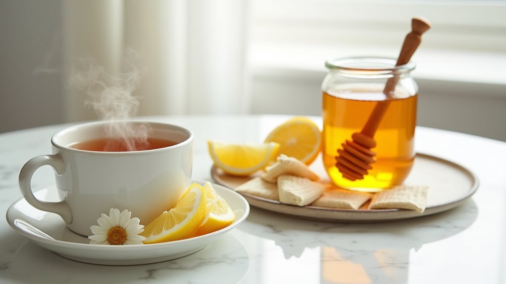 • Cool chamomile tea offers dual benefits of pain relief and antiviral properties while being gentle enough for children.