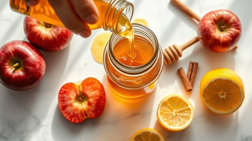 Apple cider vinegar’s pronounced acidity and astringent flavor profile necessitate balanced formulation through strategic sweetener integration to achieve palatability without compromising therapeutic efficacy. Raw honey provides ideal synergy, delivering antimicrobial properties, trace minerals, and enzymatic compounds while maintaining a low glycemic index of 58. You’ll require one tablespoon per eight-ounce serving to neutralize acidity effectively.