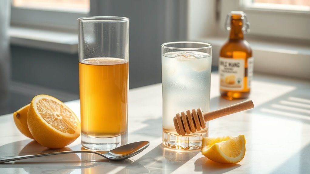 Creating an effective ACV wellness drink requires precise preparation and proper ingredient ratios to maximize its bioactive compounds. You’ll need to measure 1-2 tablespoons of raw, unfiltered apple cider vinegar containing “the mother” and dilute it in 8-12 ounces of filtered water to prevent enamel erosion and esophageal irritation.