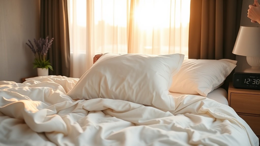 Meanwhile, keep your bedroom temperature between 60-67°F to maintain that sleep-inducing coolness throughout the night.