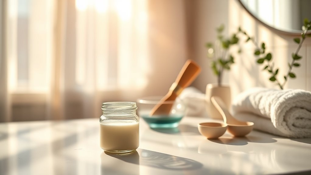 Before preparing your coconut oil hair mask, you’ll need to assemble specific components that guarantee treatment efficacy. Source virgin coconut oil as your primary ingredient—approximately 2-4 tablespoons depending on hair length and density. You’ll require a heat-safe bowl for thermal activation, preferably glass or ceramic.