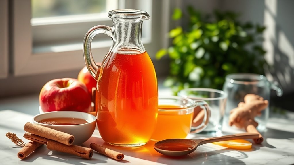 Ideal energy enhancement requires precise formulation of your morning tonic, starting with one to two tablespoons of raw, unfiltered apple cider vinegar containing the “mother” culture—a complex biofilm of acetic acid bacteria and beneficial enzymes. You’ll dilute this concentrate in 8-12 ounces of filtered water to prevent enamel erosion and esophageal irritation.