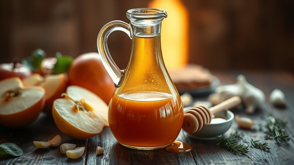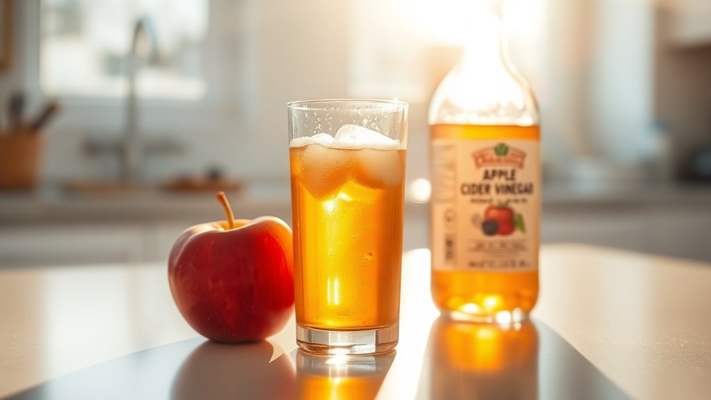 The acetic acid also promotes glycogen breakdown in your liver, providing sustained glucose release. You’ll notice improved mental clarity and physical endurance when incorporating this evidence-based morning ritual, as your body maintains ideal metabolic efficiency throughout your most demanding hours. The probiotics and enzymes in raw apple cider vinegar further enhance nutrient absorption, allowing your body to extract maximum energy from your breakfast meal.