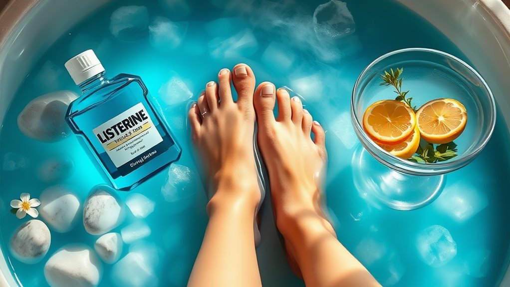 You’re about to reveal some Listerine foot soak hacks that can seriously amp up your foot care routine. For a revitalizing twist, try adding essential oils like peppermint or eucalyptus to invigorate your senses. If you’re dealing with tired or sore feet, soak for 30 minutes and follow up with a pumice stone for extra smoothness. Got athlete’s foot? Mix Listerine with vinegar for a powerful treatment. And don’t forget to rinse and moisturize afterward! With these tips, your feet will feel rejuvenated, so stick around to discover even more creative ideas.