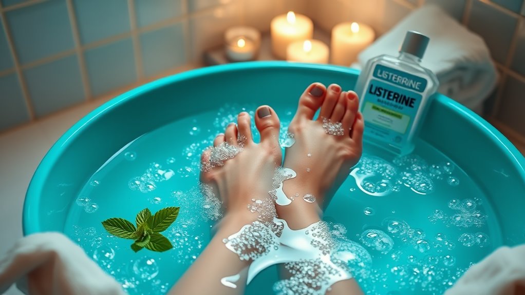 Listerine foot soak is your secret to achieving baby-soft feet with ease. By mixing one cup of Listerine with warm water and Epsom salt, you can create a soothing soak that not only relaxes tired feet but also combats odor and fungal issues. Soaking for 20 to 30 minutes softens calluses and refreshes your skin. For best results, scrub your feet afterward and apply a rich moisturizer. This simple self-care routine not only pampers your feet but enhances your overall well-being too. You’ll discover even more tips and techniques to keep your feet soft and healthy as you explore further.