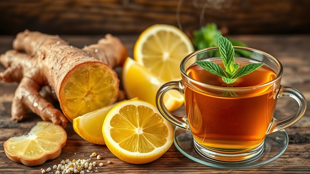 When you’re pregnant, chamomile tea’s calming effects can soothe your nerves, but it’s best to avoid it in large amounts. Ginger tea offers a safer option, easing nausea while keeping you relaxed and hydrated.