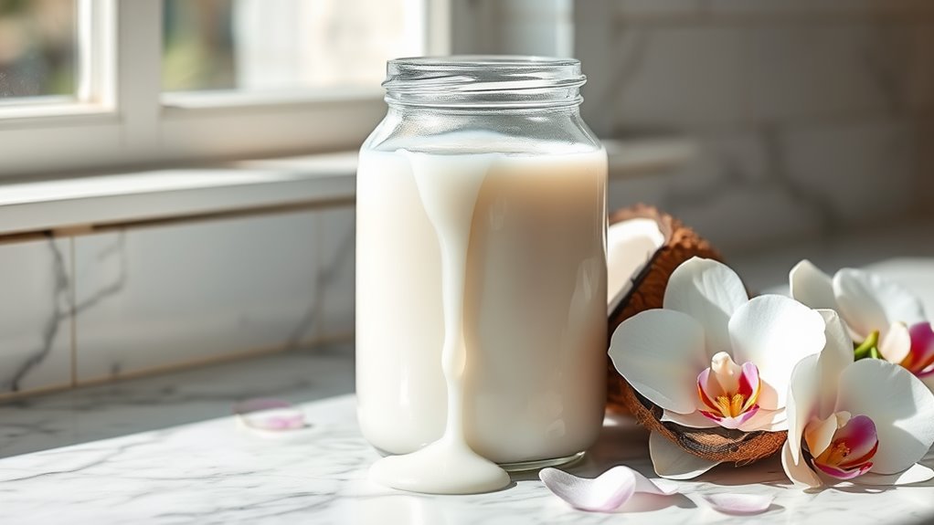 You’ll find that coconut oil’s molecular composition mirrors your skin’s natural protective barrier.