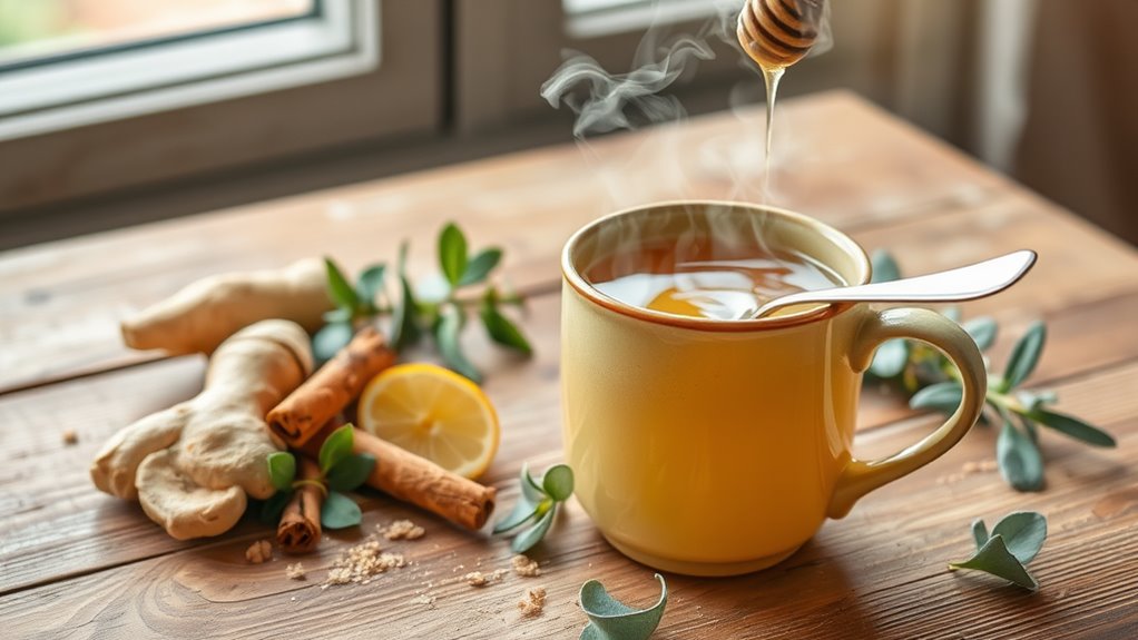 Don’t forget raw honey, nature’s antibacterial powerhouse, combined with fresh ginger to reduce inflammation and ease congestion.