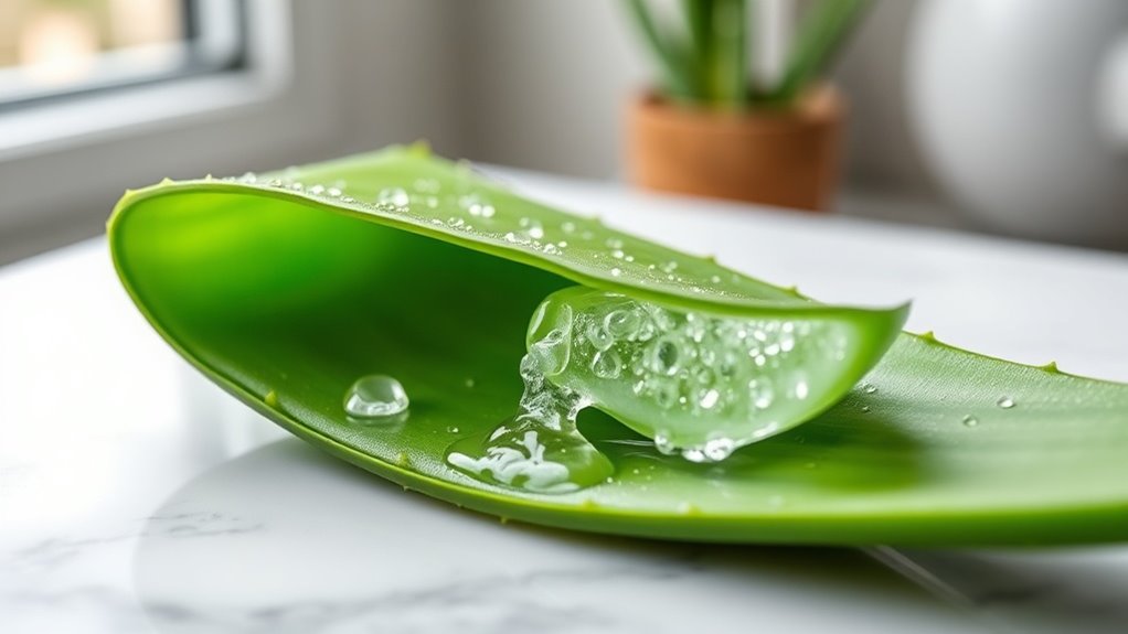 You’ll find this synergistic blend particularly effective due to the complementary mechanisms of action. The Aloe’s polysaccharides penetrate deep into the epidermis, reducing prostaglandin E2 production, while cucumber’s ascorbic acid and caffeic acid provide antioxidant protection. When applied topically, this solution creates an immediate cooling sensation and accelerates the healing of compromised skin barrier function. Clinical studies demonstrate a 47% reduction in erythema within 6 hours of application. Additionally, this remedy aligns with the principles of immediate relief noted for soothing sunburned skin, enhancing its potential effectiveness.