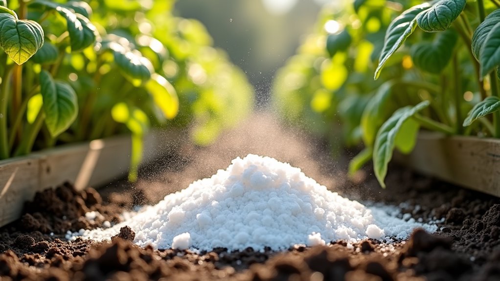 You’ll get excellent results when you mix it with Epsom salt and compost tea, creating a powerful soil conditioner that helps balance pH levels and adds essential minerals.