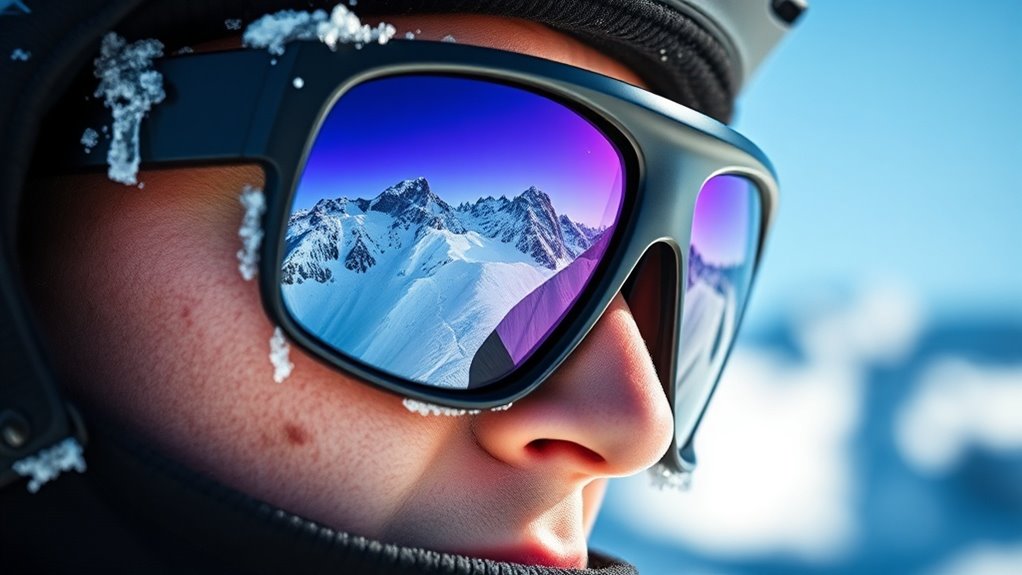 - Polarized lenses to reduce glare intensity from snow surfaces while maintaining UV protection