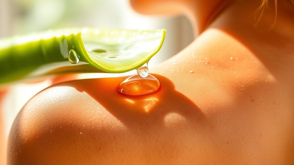 Pure aloe vera works best—avoid products containing alcohol or artificial fragrances that’ll irritate your sensitive skin further. This simple after sun care method accelerates healing while minimizing peeling and discomfort. The cooling sensation helps counteract the inflammatory response triggered by ultraviolet radiation damage to your skin cells.